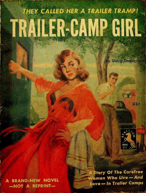 | author/editor Doug Dup[p]errault title/subtitle Trailer-Camp Girl- series/number Stallion Books - 211 publisher Universal Publishing, New York, NY year (pages - size) 1954 book cover gebunden mit farbigem Deckelbild source INT country USA original, translated by - isbn - cover artist/illustrations {unknown / unbekannt} blurb They called her a trailer tramp! - A story of the carefree women who live - and love - in trailer camps. note Digest Size comments - |